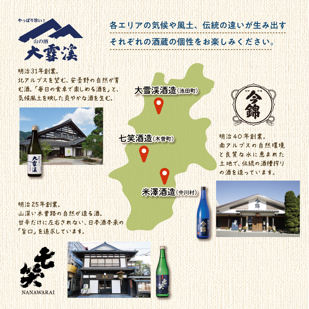 池田町大雪渓酒造さん、木曽町七笑酒造さん、当社米澤酒造の3蔵が参加いたします。